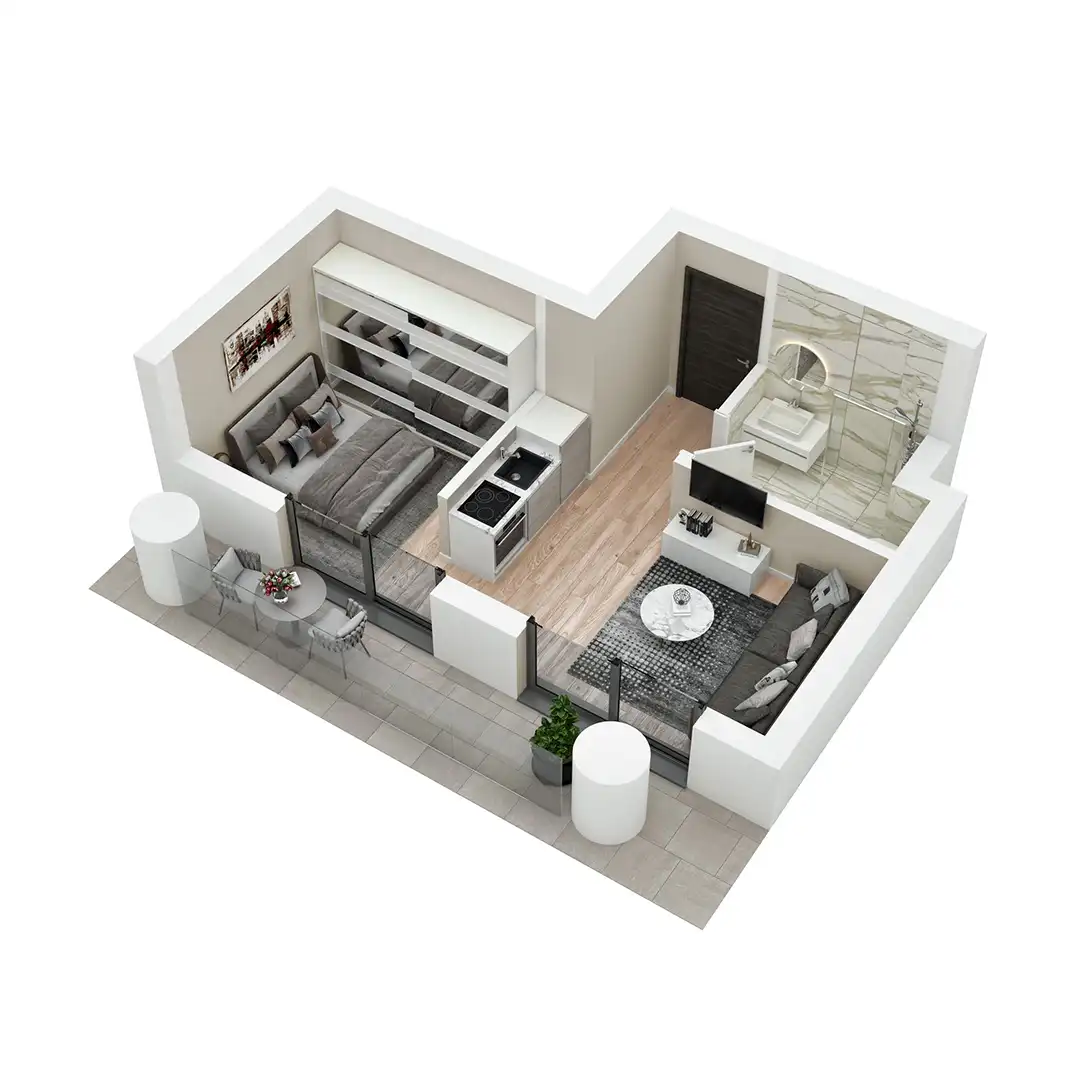 3 | Dnevna soba, trpezarija, kuhinja | 14.09 m2 |