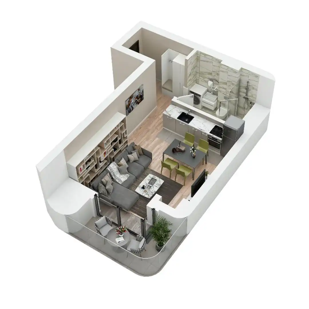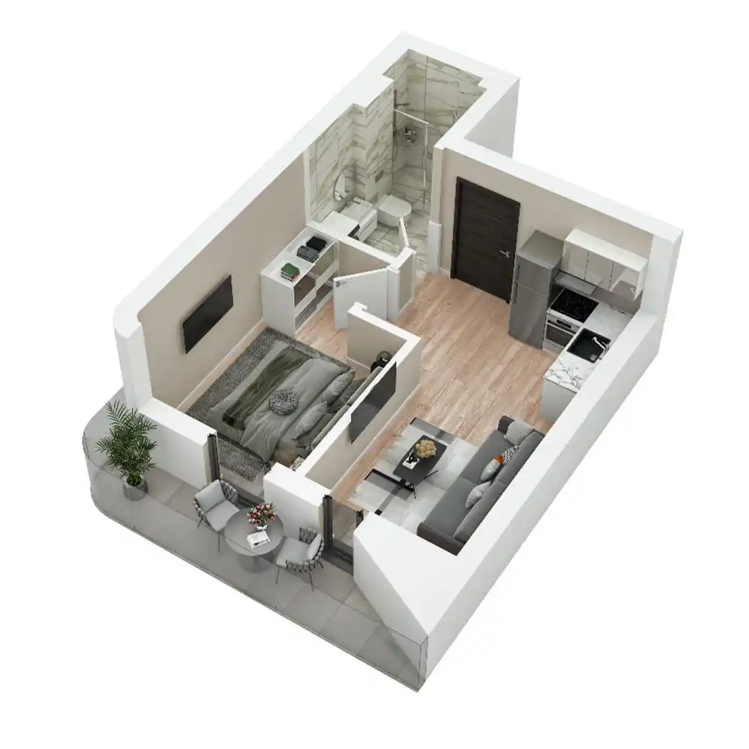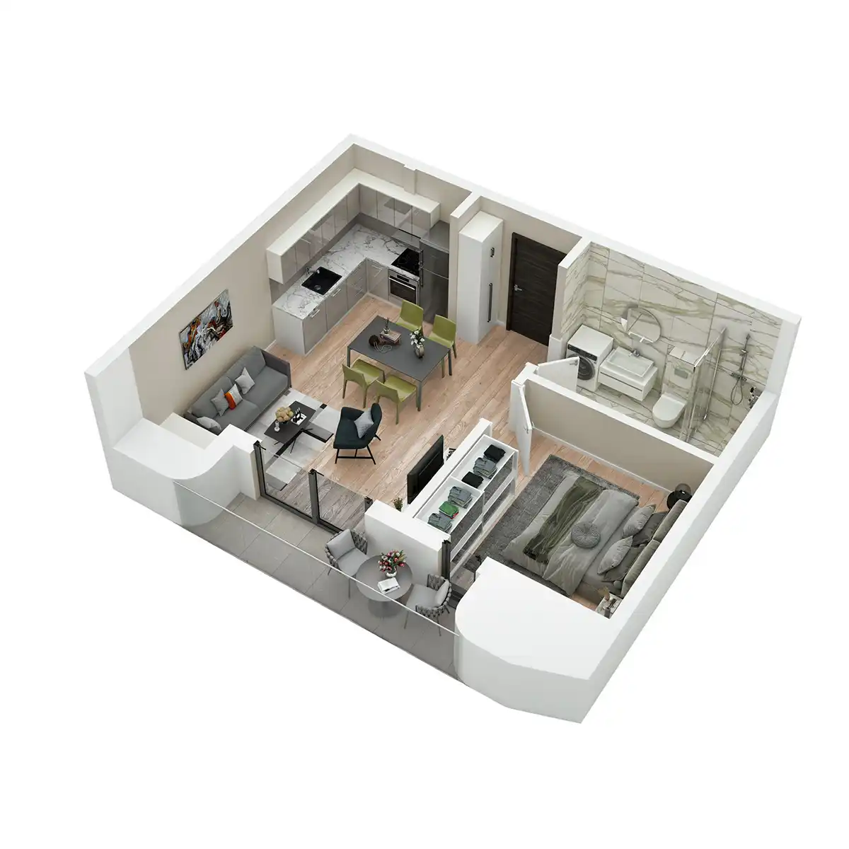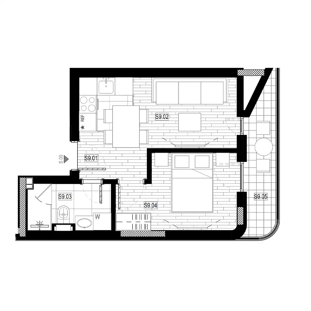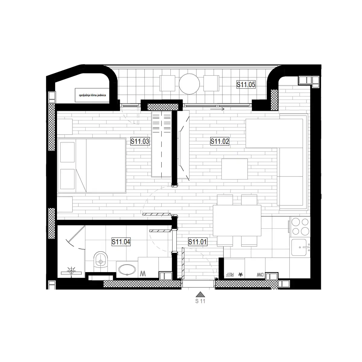 | 2 | Dnevna soba sa kuhinjom i trpezarijom | 13.72 m2 |