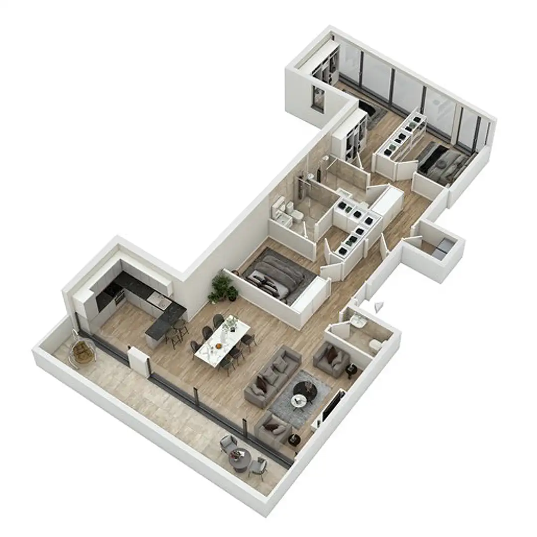 Na uglovima zgrade nalaze se ekskluzivni stanovi sa tri ili četiri spavaće sobe kojima je omogućen otvoreni pogled na grad uz obilje sunčeve svetlosti za savršeno uživanje.