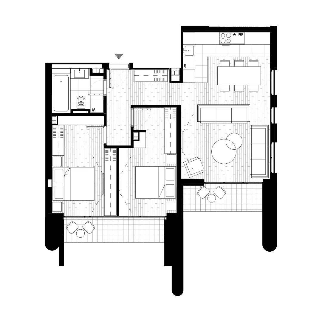 Fasada i enterijer izrađeni su prema najnovijim trendovima, kombinujući savremenu estetiku sa visokokvalitetnim završnim obradama. Svaka jedinica je pažljivo osmišljena kako bi maksimalno iskoristila prostor, omogućavajući udobnost i privatnost.