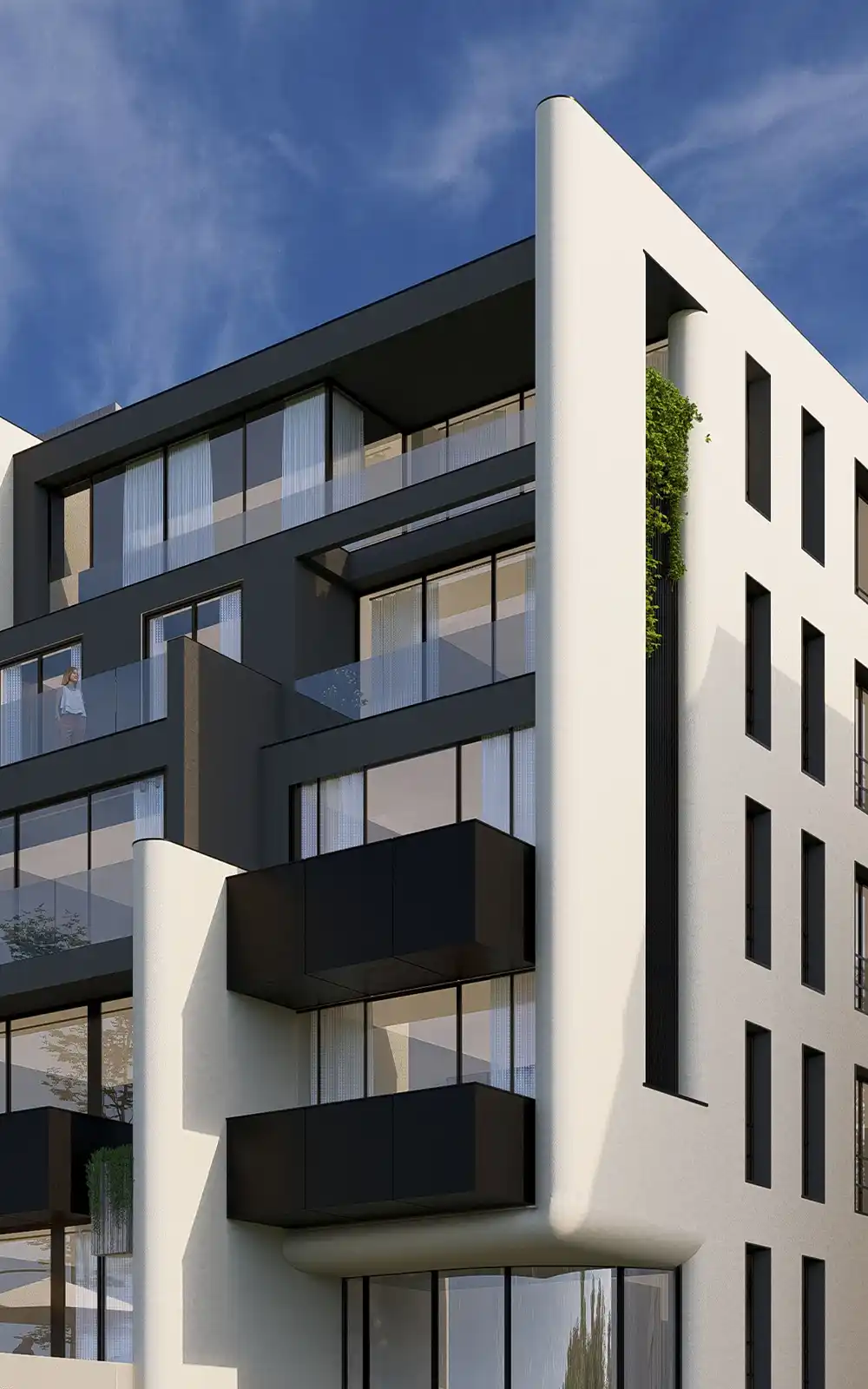 Fasada i enterijer izrađeni su prema najnovijim trendovima, kombinujući savremenu estetiku sa visokokvalitetnim završnim obradama. Svaka jedinica je pažljivo osmišljena kako bi maksimalno iskoristila prostor, omogućavajući udobnost i privatnost.