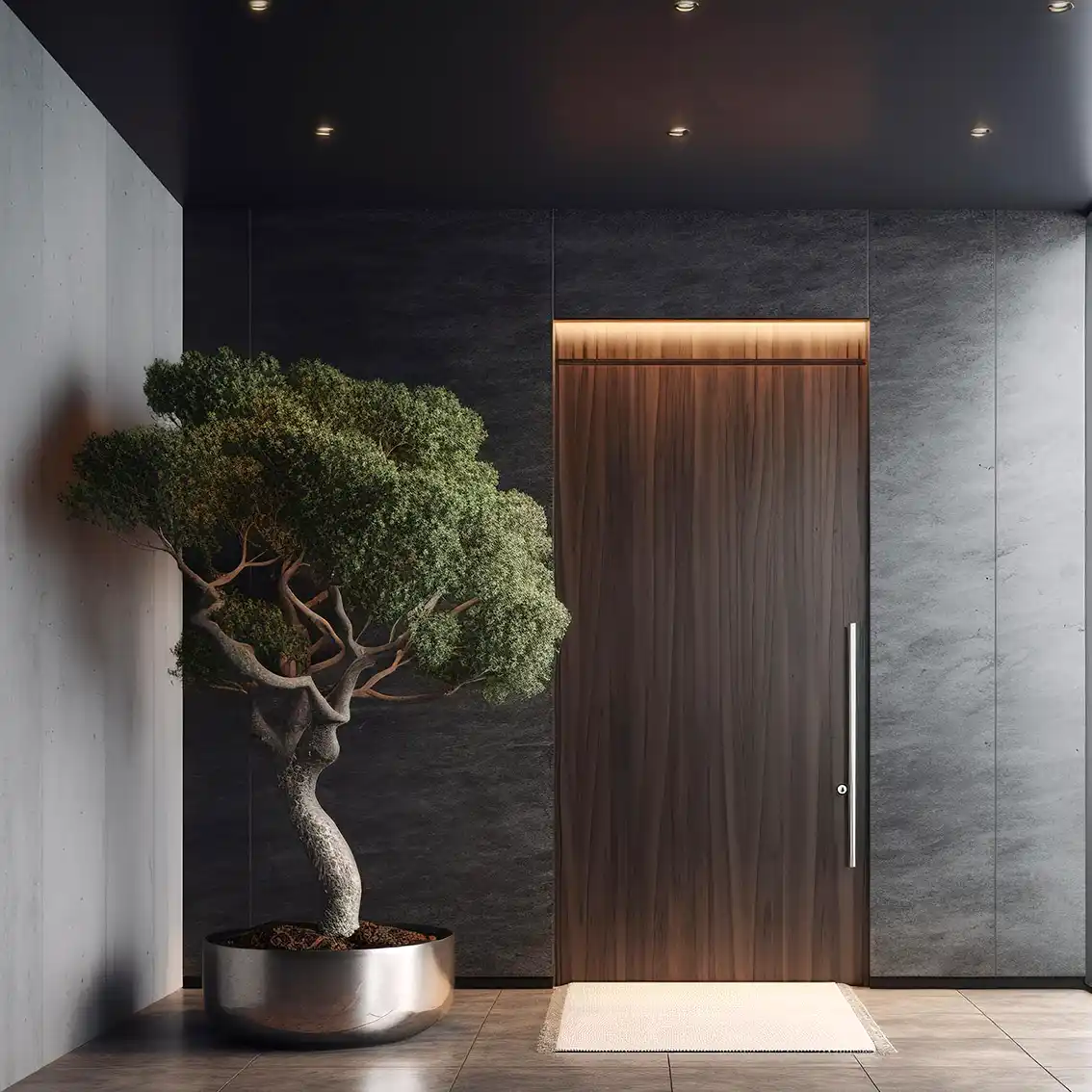 Moderno dizajniran ulazni deo objekta, projektom je predviđeno postavljanje granitnih ploča prvoklasnog kvaliteta u kombinaciji sa zidom obloženim drvenim oblogama, skrivenom rasvetom i stilizovanim tapetama i tehnikom.